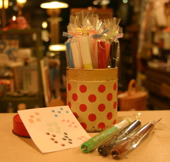 | 文房具いろいろ入荷。 お待たせしました。お馴染みのドイツ地図レターセットが再入荷です。蝋引き封筒と古切手のセットも合わせてどうぞ。 スペインのパピラスノートは男性に人気ですかね。学生さんがこれにマッチラベルを貼ってオリジナルノートにするとおしゃっていました。なるほど、使えますね。気取らない普段使いのチェコ製万年筆やオランダ製の2色消しゴム、鉛筆削り、RHEITA社製のドイツ語ワードスタンプも再入荷しました。セントロペンやシャーペンも盛りだくさんです。品薄感ありありのステーショナリーが盛りっとして嬉しい。 ←オランダ製のスタンプペンが新たに登場です。計8種類のスタンプが楽しめます。お気に入りは蟻です。お手紙や封筒などに押してあげると気分もわくわくしてくるそんな素敵なペンです。プレゼントにもぜひ。 |