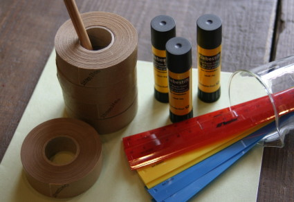 DDR伝票に紙テープで帯を付け、ドイツ語ワードスタンプを押してみるとそれなりに商品っぽく?なりました。 |