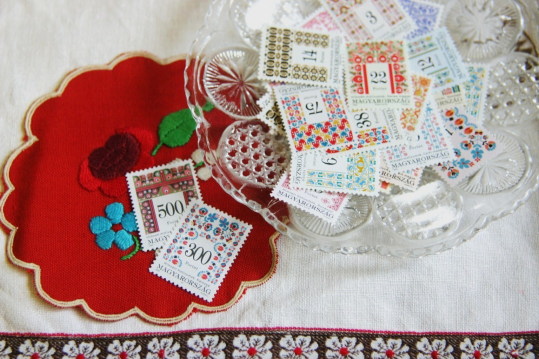| ↑の切手は前回ハンガリーの蚤の市で見つけました。切手コレクターのブースで物色していると、別のおっさんが横から割り込んできて、これ全部買わないか?と切手帳1冊持ってきました。見ると趣味じゃない切手がほとんどだったので、この刺繍柄だけを売ってもらうことに。お互い自分の主張は譲らず、値段交渉に少々時間がかかりましたが、最後は笑顔で握手したのを思い出します。 | |