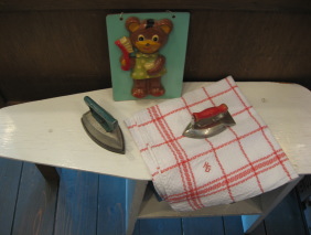 | 歯みがきくまちゃんの壁掛けオーナメント。 アイロンとしては使えないミニチュアアイロンです。ペーパーウエイトに使えそうです。 ちなみに下の白い台は子供用アイロン台です。 もちろんアイロンもできますし、ディスプレイ棚としてもお使い頂けます。 |