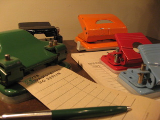 | 商品入荷のお知らせ 色とりどりなパンチたち。 オレンジ色の子はドイツメーカーBRAUSE(ブラウゼ)社のもの。ちゃんとにわとりのマークが入っています。黒のパンチはドイツの老舗文具メーカーLEITZ(ライツ)社のものです。どちらも古く良い味わいが出ています。 他の三つは旧チェコスロヴァキア製になります。緑色のパンチが気に入ってます。 当店ではパンチはそこまで売れるものではないのですが、気がついたら沢山集まっていました。個人的に好きでついつい連れて帰ってきます。 パンチ展でもできそうなくらいありますが、パンチ展もどうかと、、。しかもなんだか響きも良くない。とりあえず出してみました〜。 |