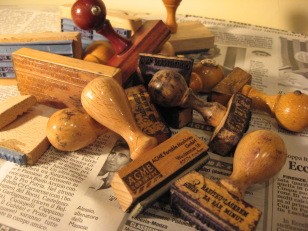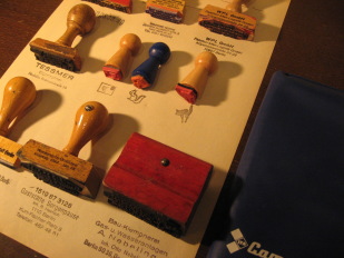 | 商品入荷のお知らせ ベルリンの蚤の市で見つけたスタンプです。 企業名や住所、「文書」「住宅信用機関」 など一見堅苦しい響きですが、紙に押すとなかなか良い雰囲気です。小さいネコやリスもいます。 右隅に見えている手帳は、旧東ドイツで使われていたキャンプツーリスト(DDR)のデッドストック。個人的に気に入ってます。 旅のときはいつも手帳を二冊持っていきますが、走り書きが多い為、後で解読するのに時間がかかります。そんな私は習字初段、ペン字検定三級、ビジネス文書検定三級です。なんだか履歴書っぽくなりすみません。 |