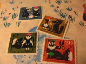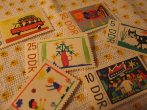 | 商品入荷のお知らせ ドイツの素敵な切手たち。 グリム童話「赤ずきん」や「白雪姫」の可愛らしいイラストものや動物もの、社会福祉記念切手など。全てセットでの販売となります。ドイツの使用済み切手も合わせて入荷しました。 見ていて楽しい切手たち。何に使おうかなと考えるだけでワクワクしてきます。ビンや缶に貼ったり、額装したり、ラッピングなどのギフトにお気に入りを一枚、お手紙のシール代わりにちょこんと一枚。あなだだけのお気に入りを見つけて下さい。 ↓東ドイツ時代の六歳の子供たちが描いたイラストをモチーフにした切手。 |