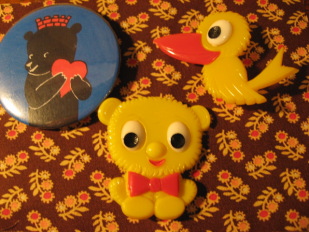 | 商品入荷のお知らせ ドイツで見つけたDDRのキュートな小物たち。 DDRのプラスチック製バッジ、黄色の子たちに久々に出会いました。ベルリンの蚤の市でももうすっかり見かけなくなり、以前はいろんな色をしたウサギやネコ、ハリネズミ、時計くん、キノコちゃんなどいろいろありました。皆なかなかの人気者でした。また再会できて嬉しいです。 これからの季節に似合うリングやアンブレラのブローチ。開いてある傘のモチーフは良く見かけるけど、閉じてある傘も意外と可愛いです。雨が降っても傘をささない外国人からするとこの状態がいちばん見慣れているのでしょうか? |