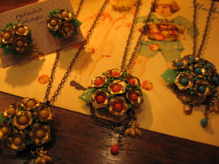 | 商品入荷のお知らせ natsuko takagiの新作アクセサリー。 お花畑で蜂が蜜に誘われて飛んできたかのような華やかなペンダントとお揃いで付けたいピアス。ツバメたちが赤や黄色の実を運んでいる涼しげなネックレスとピアス。四つ葉のクローバーに良く見るとてんとう虫がちょこん、光の当たり具合でガラスがキラキラしたり、艶消しのように曇ってみえたり不思議な色をしたランプワークガラスたち。 炎の中で溶かして作るランプワークガラスやひとつ、ひとつ丁寧に作られるボヘミアンビーズの装飾とヴィンテージパーツとの絶妙な組み合わせにいつも感激して見入ってしまいます。 |