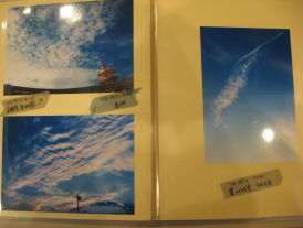 | いつも遠くから来て頂くお客様より素敵なものを見せて頂きました。 空模様の写真です。翼のような形をした雲はお友達の結婚パーティーの招待状に使われたそうです。 空模様は一度きりのもの、その時に出会った景色と全く同じものには二度と出逢えません。毎日の生活の中でほんの少しだけ空に目を向けてみては。(お客様の言葉より) 他の写真も素晴らしく、まるで写真集を見ているかのようでした。 |