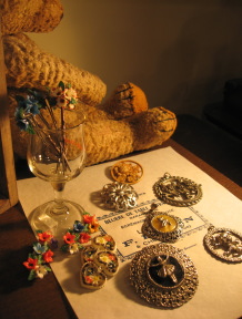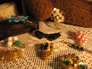 | こちらも1920年〜40年代頃の ヴィンテージもの。 チェコのアンティークマーケットで出会いました。ガラス素材やラインストーンを使用したブローチは、今の時代にはない表情や雰囲気があります。 もう少しでアンティークの仲間入りですね。 |