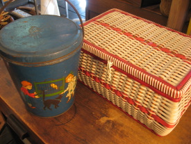 | チェコで見つけたヴィンテージのバケツ缶。 反対側にも子供たちとオウムちゃんのイラスト入り。どうやらおもちゃの缶だったみたいです。 ソーイングボックスはプラハのバザールにて。年代物の為、多少汚れがあります。 細々とした裁縫道具を大切にしまっておきたくなりました。 |