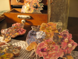 | ドイツのイラストを布にプリントして、スパンコールやビーズなどをあしらったブローチ。 レトロ感たっぷりです。クラシカルな装いのときやカゴバックに付けてもいいかも。 黒や茶系が多くなる冬の着こなしには、ぱっと華やかな色合いのアイテムが欲しくなります。 |