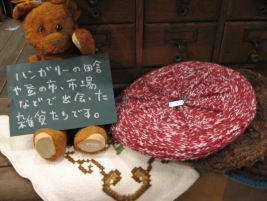 | ハンガリーの田舎町でおばあちゃんがよく被っているあったかニット帽子。 これも蚤の市のおばあちゃんブースで。二人のおばあちゃんから熱いラブコールを受けて購入。 |
