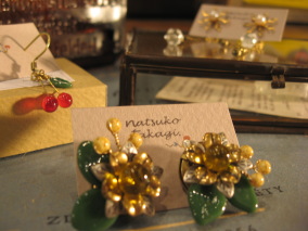 | 商品入荷のお知らせ natsuko takagiの新作アクセサリー。 気持ちまで華やかにしてくれるピアスたち。少しゴールドががったランプワークガラスが大人っぽくて、とってもエレガント。 人気の林檎のピアスに続き、さくらんぼが 初登場。可愛らしく繊細な印象です。 (こちらも林檎と同じく片方のみ) 雫シリーズを含めて計10点の入荷です。 |