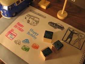 | うちの店ではワーゲンをメインで作って頂きましたが、他にもオーダーを受けていろいろなハンコを作っていらっしゃいます。他の作品も見せて頂きましたが、オーダーメイドだけあって面白い作品もありました。 オーダーに関して興味のある方は、どうぞ店頭にてお尋ね下さい。 |