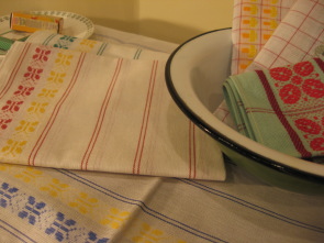 | 商品入荷のお知らせ チェコで見つけたキッチンクロスたち。 毎回仕入れてくるこのふきんですが、キノコ柄やお花柄などいろいろあったのに、買い付けに行く度に柄が変わっていたり、廃番?になっていたり。。。今回のこのちょうちょ柄は初お目見えです。 テーブルセンターとして敷いてもかわいい。 |
