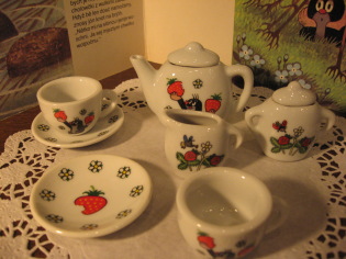 | 商品入荷のお知らせ チェコの国民的キャラクター、クルテクのミニチュア食器のセットです。 イチゴを満足げに手にしているクルテク。少しかじってあるお皿の模様がなんともユニーク。 友人が子供とイチゴ狩りへ行って、その子供がなんと100個食べたそうです。恐るべし!ちなみに私は主人の実家に帰省した時、メロン狩りに行ったことがあります。メロン1個お土産付きで食べ放題でしたが、メロンはそうそう何個も食べるものではありませんね。元を取らなきゃと食い意地をはり、食べ過ぎて今では二人ともあまり好きじゃなくなりました。 |