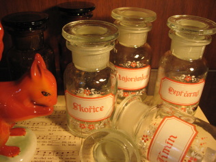 | 商品入荷のお知らせ 1960〜70年代のチェコスロヴァキア製のスパイスボトル。 クミン、シナモン、マージョラム、ブラックペッパーです。これ以外にもパプリカ、オールスパイスなどがございます。同年代に作られた茶色のメディスンボトルも出しました。家でもスパイスの入れ物はいつもビンを選びます。風味は長持ちするし、見た目もきれい! 私は香辛料をいっぱい入れて作る煮込み料理が大好きです。家でもインドカレーやスープをよく作ります。いつも適当な目分量で作るのでその都度味が違ってきます。本を見ながら作るのがめんどくさいだけなんです。 |