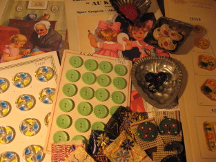 | 商品入荷のお知らせ ドイツやフランス蚤の市のボタンたち。 木製の花柄ボタンやアクリル製のカラフルなボタンが並びました。 1920〜30年代に作られたドイツ製のベークライトボタンは見ごたえあります。こちらはシート売りさせて頂きます。 手芸屋さんの紙モノもかわいいですよ〜。 入園、入学の準備で大忙しの皆さん、縫いもの頑張って下さい。 |