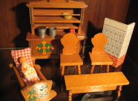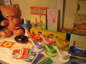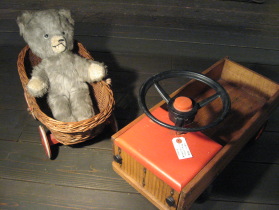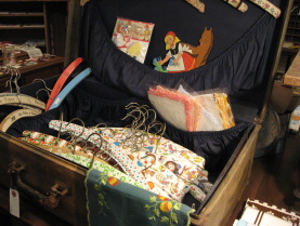 | 1970年代に旧東ドイツの保育園で使われていたおもちゃのトラック。いい顔してます。 | レトロなビニールハンガーや木製のハンガーがたくさん。実際の蚤の市でもこんな感じでトランクに入っています。ちょっと再現。雰囲気だけでも。。。 |