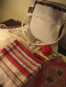 | こちらも東欧の匂いが漂う刺繍もの。 刺繍とレースをあしらったハンドメイドの布バック(ハンガリー)や民族衣装を思わせる頭に付ける帽子のようなもの。 名前がわかりません。子供用エプロンかと思って聞いたところ、そのような回答でした。でもくったりした感じが良く、エプロンとして子供が着けていたらかわいいかなと思います。 刺繍の本も合わせて入荷しています。 |