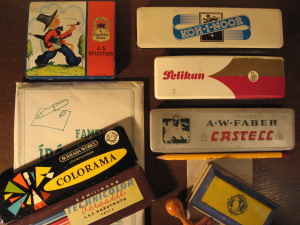 | 商品入荷のお知らせ ドイツのペリカン、ファーバーカステル、ステッドラーのヴィンテージペンケース(ブリキ製)です。中に色鉛筆やクレヨン、万年筆が入っていたものと思われます。 チェコスロヴァキア時代のコヒノールのペンケースは個人的にお気に入りのひとつです。インクパットは古びて少しはげた感じがいい味を出しています。 ※トルスケスタンプが再入荷しております。人気のバスタイプが各1個ずつ。毎回器用に出来るものだな〜と見入ってしまいます。 |